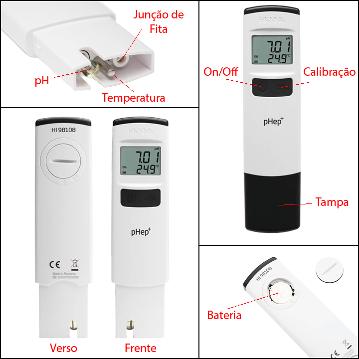 O medidor HI 98108 pHep®+ da Hanna Instruments é um equipamento robusto, de baixo custo, que fornece medidas com maior precisão (até 100 vezes maior que as fitas de pH ou testes de piscina). Possui eletrodo de pH com longa vida útil e conta com a assistência técnica e garantia da própria Hanna Instruments, no Brasil. O HI98108 revolucionou a indústria ao oferecer ao pessoal não especializado, uma maneira de medir pH de forma simples, econômica, precisa e confiável!